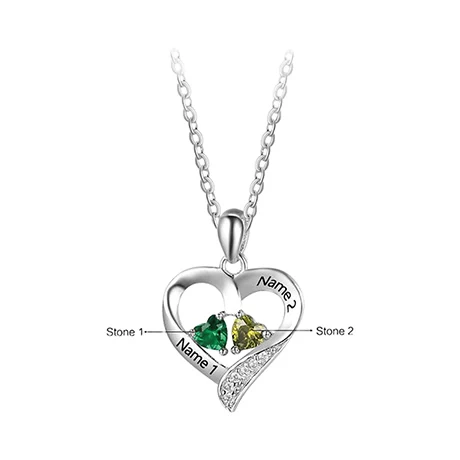 - Customize it with two birthstone CZs and two names