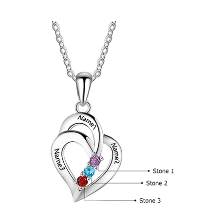 They’ll always be close to your heart when you wear this necklace personalized with three names and three birthstone cubic zirconias. The double interlocking hearts remind you that love is forever. Personalize it with three names, up to 8 characters each. It hangs from an 18” sterling silver cable chain. Pendant measures 0.91”L. Allow 3-4 weeks. No rush delivery or gift box.