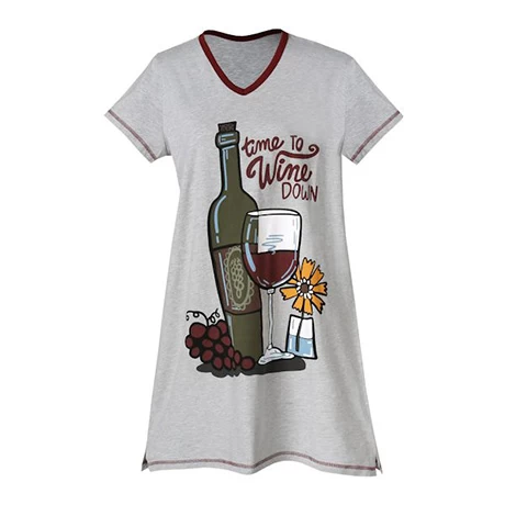 As you wind down your day, make sure you do it in perfect comfort-and with a huge smile on your face. It’s easily done in these funny contrast-trim V-neck nightshirts, tailored for a relaxed fit plus cute cap sleeves and a stylish taper; made of 100% combed cotton knit. Imported. S/M(2-8), L/XL(10-18).