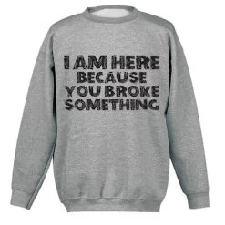 Now there’s nothing wrong with making people think you have power, right? Black sweatshirts are 50/50 cotton blend, T-shirt is preshrunk 100% cotton. Machine wash. Imported. S-3XL.
