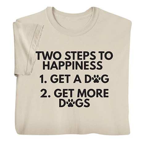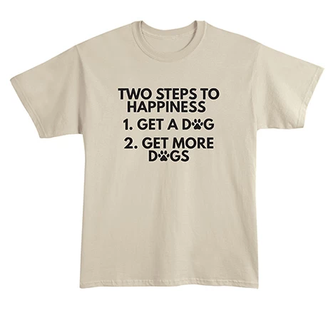 Dog-lovers understand. The first is delightful, but when you get that second one? Utter bliss. Sand sweatshirt is 50/50 cotton blend, T-shirt is preshrunk 100% cotton. Sizes S-3XL. Imported.