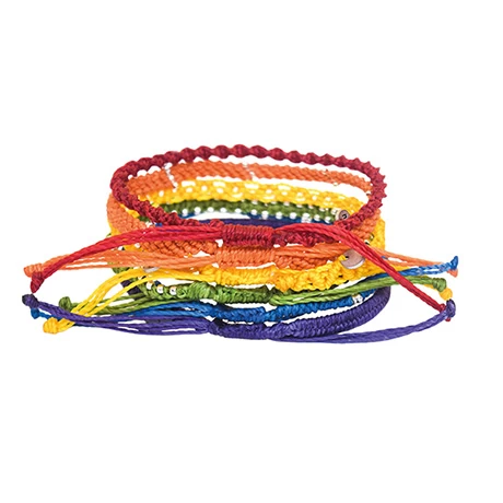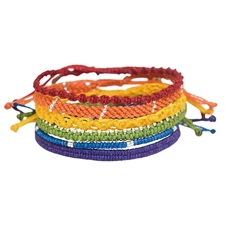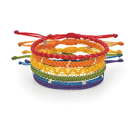 Handmade by female Fair Trade artisans in Guatemala, these bracelets remind you that we are all citizens of the world. They’re woven in the colors of the rainbow with waxed polyester thread and zinc alloy beads. Each adjusts from 7.5″-11″. Set of 6.