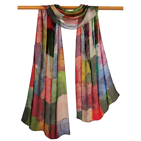 Red, yellow, blue, green, pink or teal? No matter what color you choose to wear, this scarf will be the perfect complement. 100% silk and hand-painted with a watercolor color block effect, it has the full spectrum of gemstone colors and their deeply rich qualities, too. Dry clean. Imported. 20″ x 76″.