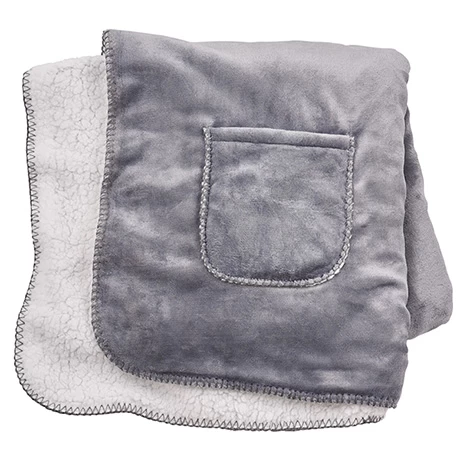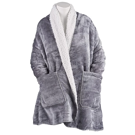 Wrap yourself in it like a cardigan or curl up under it like a blanket. This extra-soft wearable throw is smooth on one side, fleecy on the other and cuddly all over. Perfect for women or men, this polyester fleece throw has two large pockets. Machine wash. Imported. 72″ long, 32″ wide.