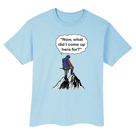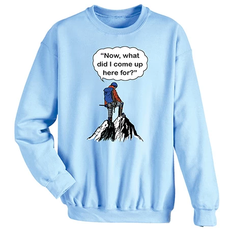 Blame it on the thin mountain air. Light blue sweatshirt is 50/50 cotton/poly. T-shirt is preshrunk 100% cotton. Machine wash. Imported. S-3XL.
