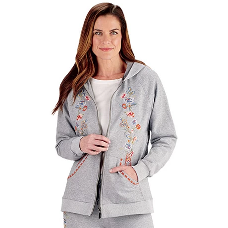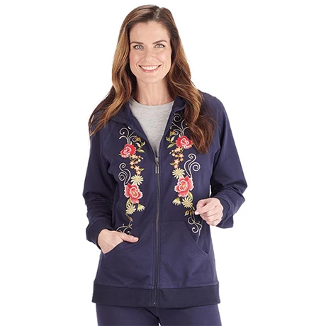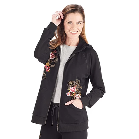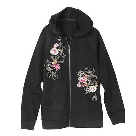 Women’s Floral Embroidered Full Zip Hoodie