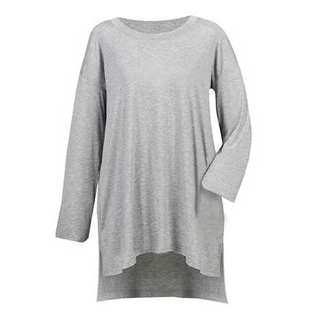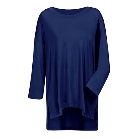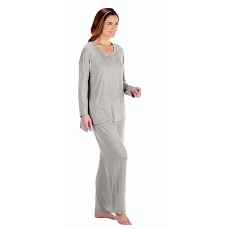 Our cozy pajamas for women feature a soft and drapey long sleeve top with a drop shoulder, side vents, and an extended hem in the rear. Rayon pj pants have an elastic waist and a roomy cut..