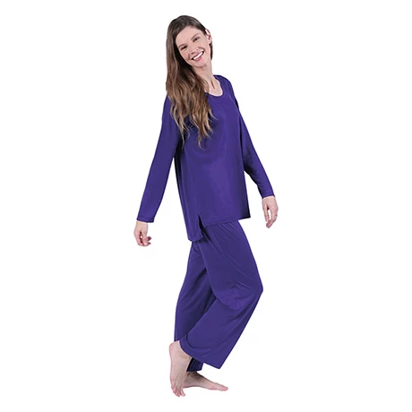 Soft women’s loungewear in your choice of 4 fashionable colors: grey, navy blue, pink, and purple.