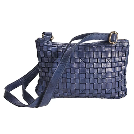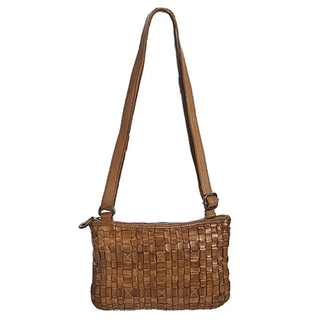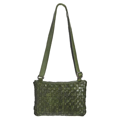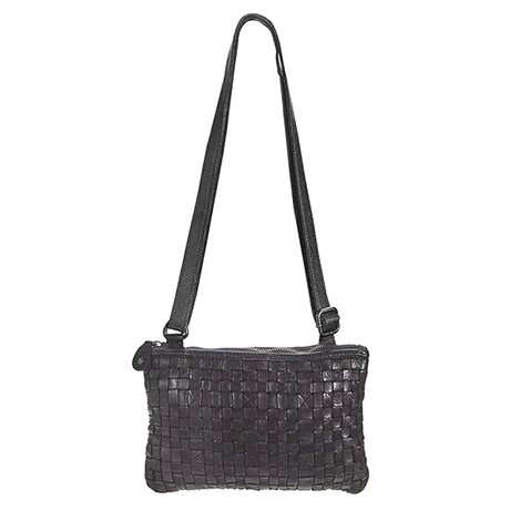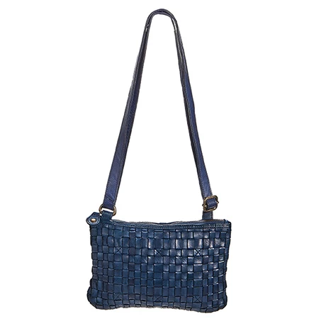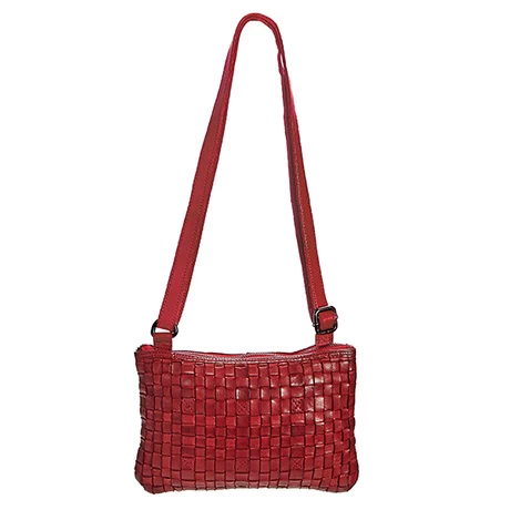 Wanting a casual look with textural interest or do you prefer a streamlined classic feel? No need to choose one or the other. With this versatile gem of a bag, you can have both. It’s woven on one side and smooth on the other. The zip top gives you easy access and two zippered pockets (one on the outside, one on the inside) give you secure places for storing important items like credit cards, keys, and a phone. 9½”w x 6″h. Leather strap adjusts 28-55″. Buttery soft full grain leather with a weathered look. Imported. Specify Green, Yellow, Taupe, Red, Black, or Navy.